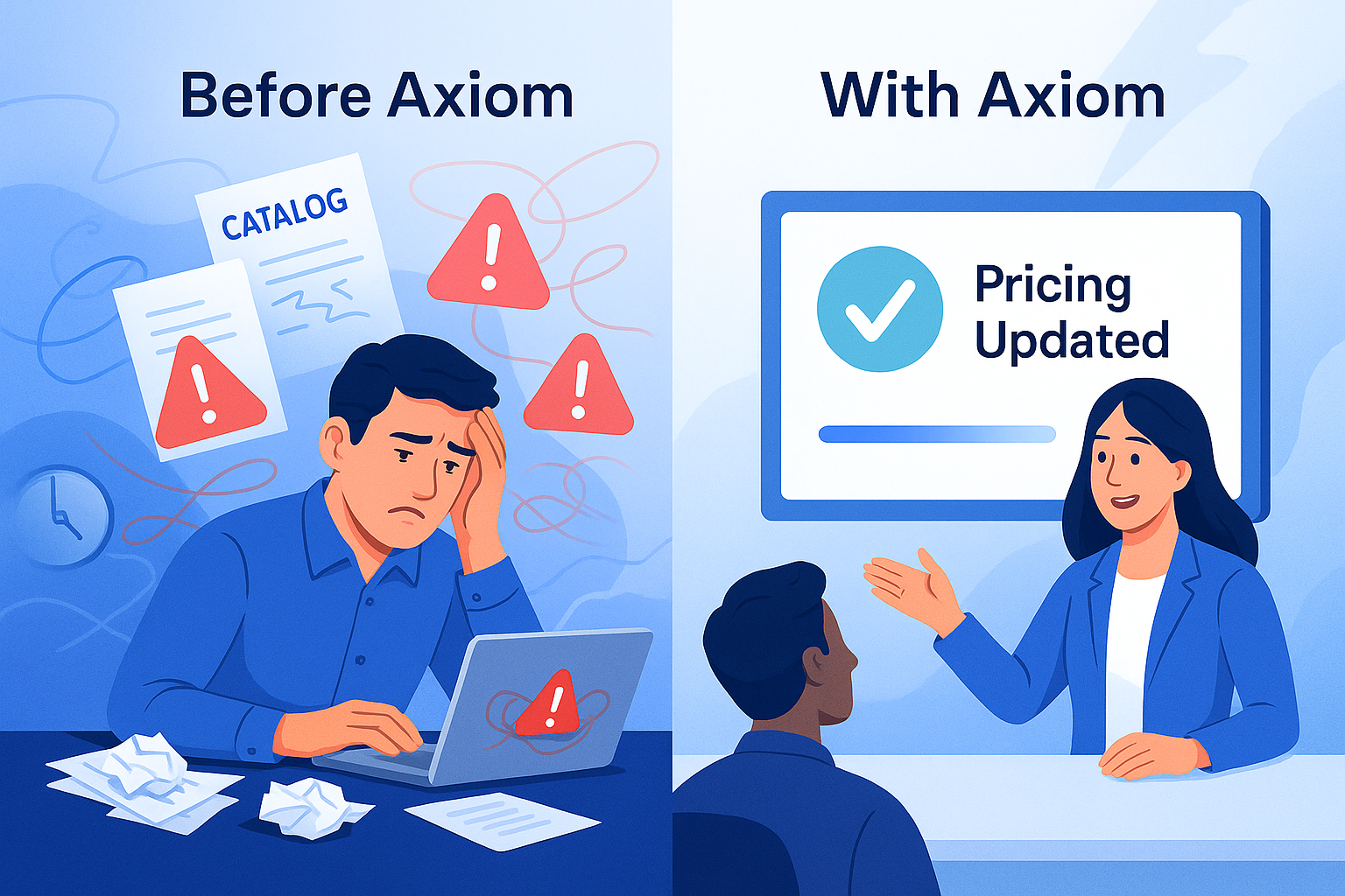 Inaccurate pricing creates hidden chaos, draining time, money, and trust. Time is a Premium Resource. In procurement, time is a premium resource. Yet every day, teams lose hours to one of the most preventable issues in the buying process: Inaccurate Pricing. It sounds minor. But in reality, inaccurate pricing triggers a domino effect that ripples across teams, systems, and spend reporting. It’s one of the key reasons procurement loses time in traditional ERP or S2P environments, and it’s exactly the kind of friction Axiom was built to eliminate. The Chain Reaction of Inaccurate Pricing. Here’s how a common scenario plays out: A buyer selects an item from a hosted catalog The price shown is outdated, but they don’t know that yet A purchase order is raised using the wrong pricing The supplier flags a discrepancy and requests a correction Finance gets involved. So does procurement Spend data is now inaccurate, causing reporting errors The purchase gets delayed, and in some cases, gets blocked entirely = frustrated buyer What began as a simple buying action turns into a time-consuming chase involving multiple teams, manual adjustments, and often a full reset of the process. Let alone, in-boxes full of decline, change, re-issue and confirmation requests. That’s not just inefficient, it’s unnecessary. Why Traditional Systems Fall Short. ERP and S2P systems were not designed for agility when it comes to catalogs, with dynamic content. Pricing is often maintained in static, fragmented hosted catalogs, which rely on either suppliers or procurement resources to manually update them, often through a clunky upload process. Add in the greater complexity of multiple variations of the same catalog for different regions, divisions or teams, multiple versions of the ERP / S2P platform across the same client organisation and it's easy to see why catalog chaos becomes the norm. Procurement ends up chasing suppliers for the right information, uploading and re-uploading catalogs, and managing a patchwork of exceptions. Not only does this waste time, but it also increases the risk of errors, misreporting, and compliance gaps. How Axiom Solves the Problem. At Axiom, we’ve reimagined how pricing is managed across the buying journey. Here’s how we do it differently: Suppliers manage pricing in one place Pricing files uploaded separately to the product catalog Updates are instant and reflected across the platform Automated approvals controlled by procurement No chasing. No manual fixes No unnecessary finance involvement and a satisfied buyer, frictionlessly buying what they searched for And procurement gets time back, plus reporting stays clean & accurate Because our marketplace model keeps supplier pricing live and centralised, there’s no lag, no mismatches, and no cascade of follow-up emails and escalations. Any price changes are fully controlled and automated. It just works, and everyone moves faster. This is what 60% Procurement Time Released Really Looks Like. The “60% time released” figure we talk about isn’t abstract, it’s grounded in real, everyday situations like this. By eliminating avoidable friction and automating the admin behind catalog management, Axiom frees up procurement teams to focus on strategy, supplier relationships, and outcomes. Not catalog clean-up. Ready to Unlock Tangible Value? Discover the value Axiom can deliver for you across your catalog and free text spend areas. {% module_block module "widget_f89a862c-157e-4ae7-ac4d-950df98425de" %}{% module_attribute "button_link" is_json="true" %}{% raw %}{"no_follow":false,"open_in_new_tab":false,"rel":"","sponsored":false,"url":{"content_id":null,"href":"https://roi.axiomdata.io/","href_with_scheme":"https://roi.axiomdata.io/","type":"EXTERNAL"},"user_generated_content":false}{% endraw %}{% end_module_attribute %}{% module_attribute "button_text" is_json="true" %}{% raw %}"Calculate Your ROI"{% endraw %}{% end_module_attribute %}{% module_attribute "child_css" is_json="true" %}{% raw %}{}{% endraw %}{% end_module_attribute %}{% module_attribute "css" is_json="true" %}{% raw %}{}{% endraw %}{% end_module_attribute %}{% module_attribute "definition_id" is_json="true" %}{% raw %}null{% endraw %}{% end_module_attribute %}{% module_attribute "field_types" is_json="true" %}{% raw %}{"add_icon":"boolean","button_link":"link","button_text":"text","copy_to_clipboard":"boolean","default_text":"group","icon":"group","styles":"group"}{% endraw %}{% end_module_attribute %}{% module_attribute "label" is_json="true" %}{% raw %}null{% endraw %}{% end_module_attribute %}{% module_attribute "module_id" is_json="true" %}{% raw %}47160432274{% endraw %}{% end_module_attribute %}{% module_attribute "path" is_json="true" %}{% raw %}"@hubspot/growth/modules/button"{% endraw %}{% end_module_attribute %}{% module_attribute "schema_version" is_json="true" %}{% raw %}2{% endraw %}{% end_module_attribute %}{% module_attribute "smart_objects" is_json="true" %}{% raw %}[]{% endraw %}{% end_module_attribute %}{% module_attribute "smart_type" is_json="true" %}{% raw %}"NOT_SMART"{% endraw %}{% end_module_attribute %}{% module_attribute "styles" is_json="true" %}{% raw %}{"alignment":{"alignment":{"css":"","horizontal_align":"CENTER"}},"corner":{"radius":17},"hover":{"background":{"color":{"color":"#9AF691","css":"#9AF691","hex":"#9AF691","opacity":100,"rgb":"rgb(154, 246, 145)","rgba":"rgba(154, 246, 145, 1)"}},"text":{"font":{"size":null,"styles":{"font-family":"verdana, geneva","font-style":"normal","font-weight":"bold","text-decoration":"none"},"fallback":null,"size_unit":null,"css":"color: #666666;font-family: verdana, geneva; font-weight: bold;","color":"#666666","variant":null,"font":"verdana, geneva","style":"font-family: verdana, geneva; font-style: normal; font-weight: bold; text-decoration: none","font_set":"DEFAULT"}}},"text":{"font":{"size":29,"styles":{"font-style":"normal","font-weight":"bold","text-decoration":"none"},"fallback":nul